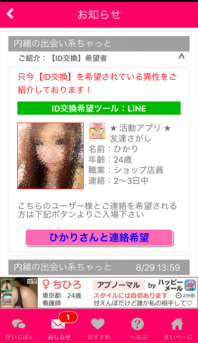基本的にダウンロードしたユーザーを騙しにきているのは明白なので、プラスになる事はほとんど無いでしょう。そればかりか、女性の写真と共に理由をつけて連絡を待っているとお知らせが届きますがこれも自動で送信されているものと考えられ事実ではありません。